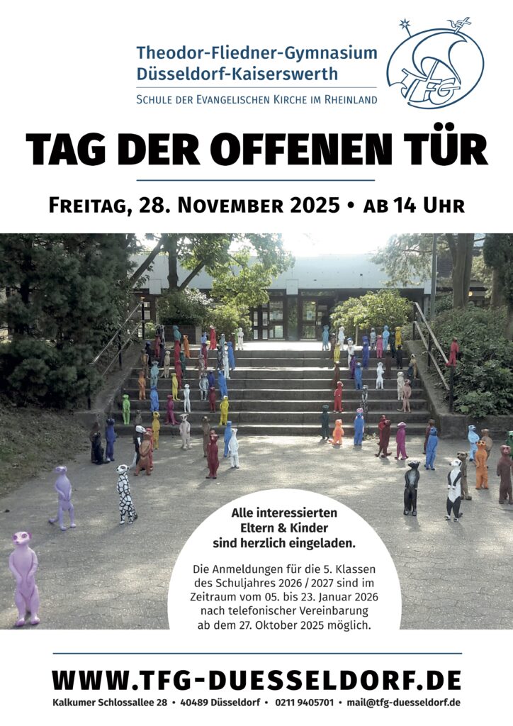 Zur Planung Ihres Besuchs erbitten wir Ihre E-Mail-Adresse. Bitte melden Sie sich mit dem Namen Ihres Kindes und Ihrer E-Mail-Adresse an. Diese Daten werden zu keinem anderen Zweck als dem der Kontaktaufnahme bezüglich Ihres Besuchs am Theodor-Fliedner-Gymnasium genutzt und bis zum 15.12.2025 vollständig aus unseren Unterlagen entfernt.